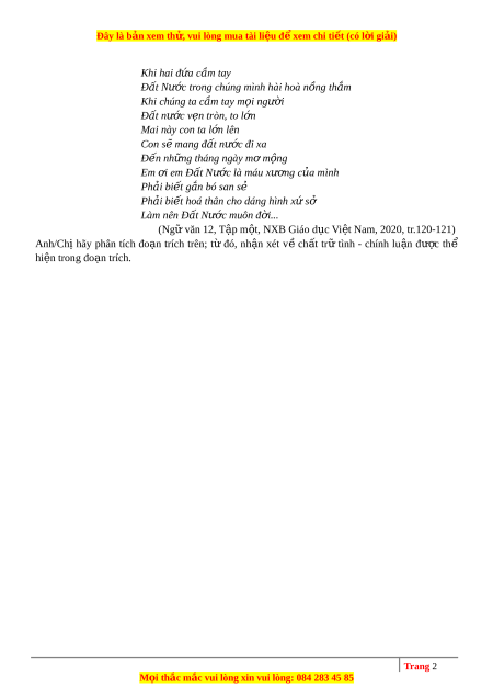 Câu 2: (VDC) Trong đoạn trích Đ t ấ Nư c ớ (trư ng ờ ca M t ặ đư ng ờ khát v ng) ọ , nhà th ơ Nguy n ễ Khoa Đi m ề vi t: ế Trong anh và em hôm nay Đ u ề có m t ộ ph n ầ Đ t ấ Nư c ớ Trang 1 M i