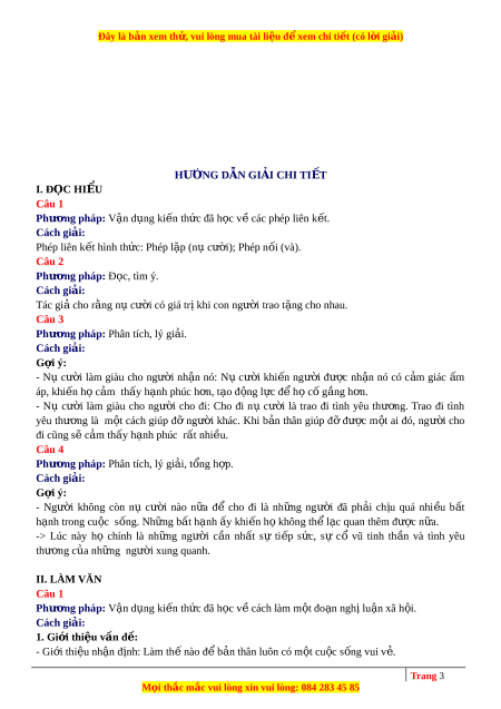 Phương pháp: Vận dụng ki n ế th c ứ đã h c ọ v ề các phép liên k t. ế Cách gi i: ả Phép liên k t ế hình th c ứ : Phép l p ặ (n ụ cư i) ờ ; Phép n i ố (và). Câu 2 Phương pháp: Đ c ọ , tìm ý. Cách gi i: ả Tác giả cho r ng ằ n ụ cư i