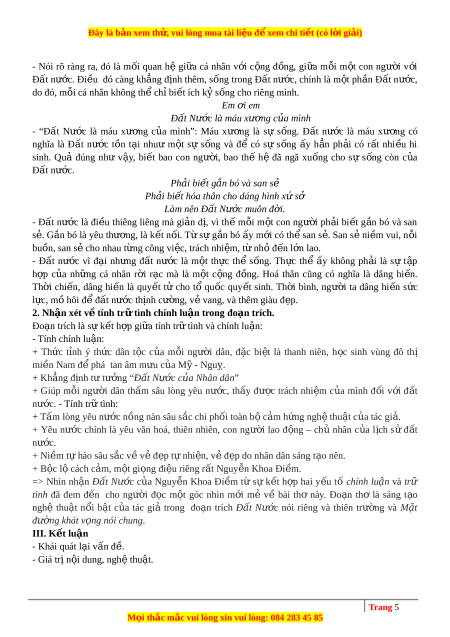 => Nhìn nh n ậ Đ t N c ấ ướ c a Nguy n Khoa Đi m t s k t h p hai y u t ủ ễ ề ừ ự ế ợ ế ố chính lu n ậ và trữ