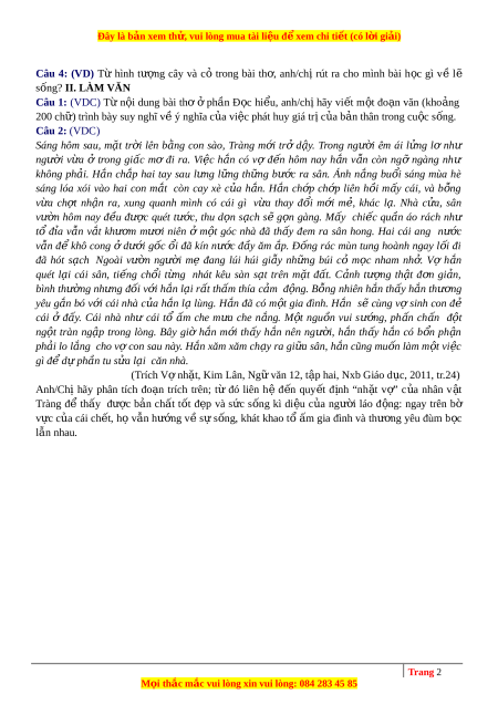 Đây là bản xem th , vu ử i lòng mua tài li u ệ đ xe ể m chi ti t ế (có l i ờ gi i ả ) HƯ NG Ớ D N Ẫ GI I Ả CHI TI T Ế I. Đ C Ọ HI U Ể Câu 1 Phương pháp: Đ c ọ , tìm ý. Cách gi i: ả Trong bài th : ơ