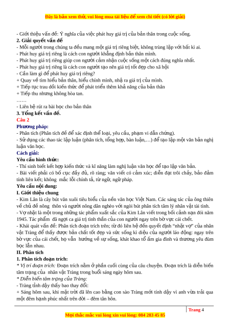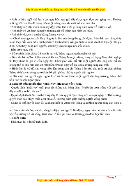ạ trích trên; từ đó liên hệ đ n ế quy t ế đ nh ị “nh t ặ v ” ợ c a ủ nhân v t ậ Tràng để th y ấ đư c ợ bản ch t ấ t t ố đ p ẹ và s c ứ s ng ố kì di u ệ c a ủ ngư i ờ láo đ ng: ộ ngay trên bờ v c ự c a ủ cái ch t ế , h ọ v n ẫ hư ng ớ v ề s ự s ng ố , khát khao t ổ m ấ gia đình và thư ng ơ yêu đùm b c ọ lẫn nhau. 2 Trang 2 M i