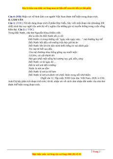 Câu 4: (VD) Nhận xét v ề hình nh ả con ngư i ờ Vi t ệ Nam đư c ợ th ể hi n ệ trong đo n ạ trích. II. LÀM VĂN Câu 1: (VDC) Từ n i ộ dung đo n ạ trích ở ph n ầ Đ c ọ hi u ể , hãy vi t ế m t ộ đo n ạ văn (kho ng ả 200 ch ) ữ trình bày suy nghĩ c a ủ anh/ch ịv ề ý nghĩa c a ủ nh ng ữ giá tr ịtruy n ề th ng ố trong cu c ộ s ng ố