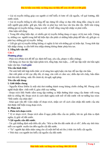 Đây là bản xem th , vu ử i lòng mua tài li u ệ đ xe ể m chi ti t ế (có l i ờ gi i ả ) + Giá trị truy n ề th ng ố giúp con ngư i ờ có thể hi u ể rõ h n ơ về c i ộ ngu n, ồ về quê hư ng, ơ đ t ấ nư c ớ mình. + Giá trị truy n ề th ng ố là n n ề t ng ả để t o ạ d ng ự l i ố s ng ố và đ o ạ đ c ứ đúng đ n; ắ cũng là cách mỗi ngư i ờ góp ph n ầ giữ gìn, b o ả t n