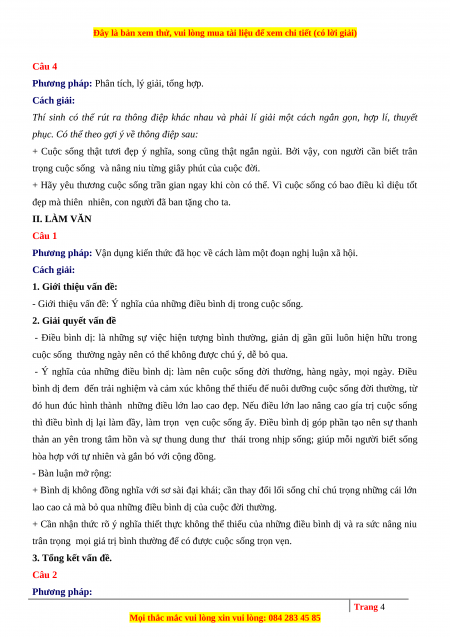 về ý nghĩa của những điều bình dị trong cuộc sống. Câu 2: (VDC)