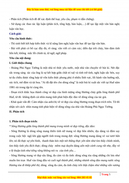 - Khái quát vấn đề: Cảm nhận của anh/chị về vẻ đẹp của sông Hương trong đoạn trích trên. Từ đó