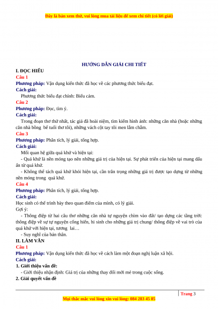 HƯỚNG DẪN GIẢI CHI TIẾT I. ĐỌC HIỂU Câu 1