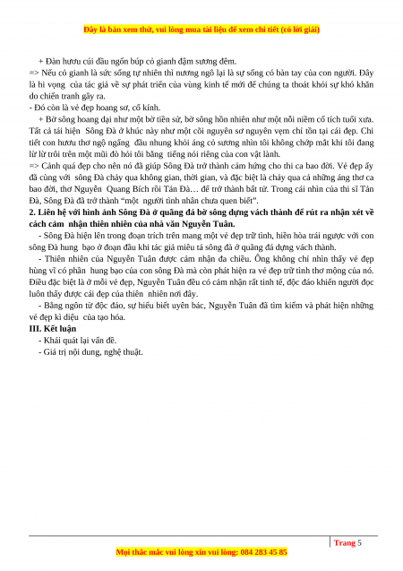 - Sông Đà hiện lên trong đoạn trích trên mang một vẻ đẹp trữ tình, hiền hòa trái ngược với con