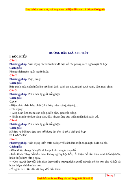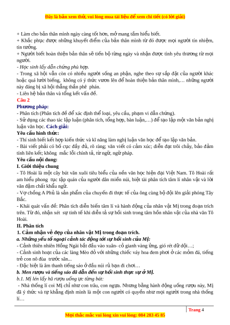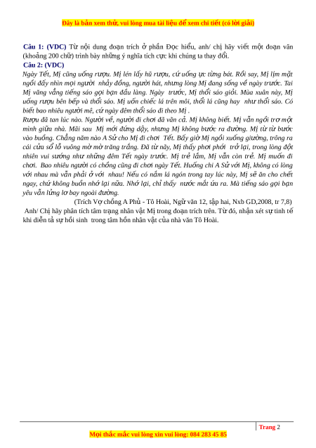 Đây là bản xem th , vu ử i lòng mua tài li u ệ đ xe ể m chi ti t ế (có l i ờ gi i ả ) Câu 1: (VDC) Từ n i ộ dung đo n ạ trích ở ph n ầ Đ c ọ hi u, ể anh/ chị hãy vi t ế m t ộ đo n ạ văn (khoảng 200 ch ) ữ trình bày nh ng ữ ý nghĩa tích c c ự khi chúng ta thay đ i. ổ Câu 2: (VDC) Ngày T t, ế Mị cũng u ng ố rư u. ợ Mị lén l y ấ hũ rư u, ợ cứ u ng ố c ự t ng ừ bát. R i ồ say, M ịl m ị m t ặ ngồi đ y ấ nhìn m i ọ ngư i