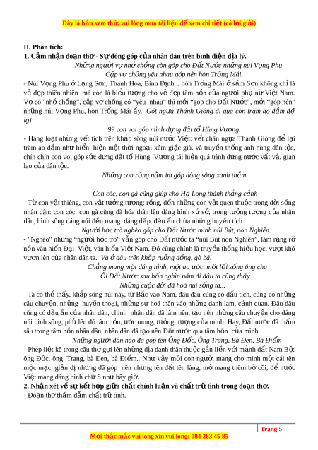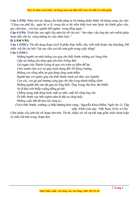 ờ đã hóa núi sông ta... (Trích Đất Nư c ớ , trư ng ờ ca M t ặ đư ng ờ khát v ng ọ - Nguy n ễ Khoa Đi m ề , Ng ữ văn 12, T p ậ m t, ộ NXB Giáo d c ụ Việt Nam, 2016, tr.120) Cảm nhận c a ủ anh/chị về đo n ạ th ơ trên. T ừ đó, nh n ậ xét v ề s ự k t ế h p ợ gi a ữ ch t ấ chính lu n ậ và ch t ấ tr ữ tình trong đoạn th . ơ 2 Trang 2 M i