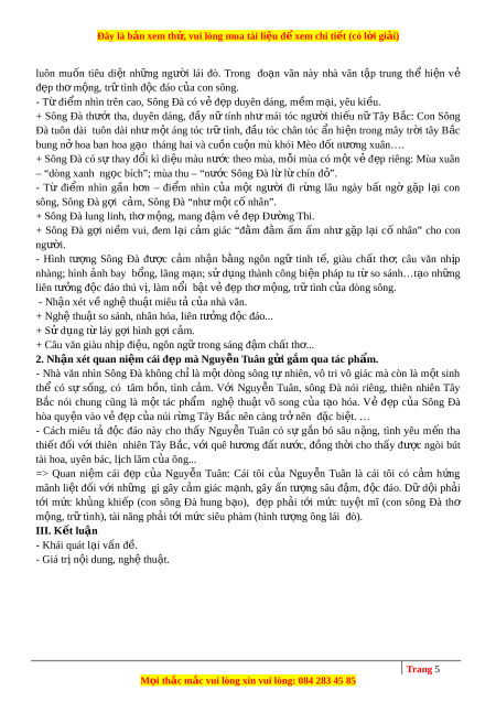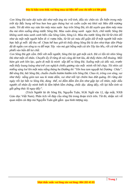 ệ Nam). Phân tích vẻ đ p ẹ c a ủ sông Đà trong đo n ạ trích trên. T ừ đó, nh n ậ xét về quan ni m ệ cái đ p ẹ mà Nguy n ễ Tuân g i ử g m ắ qua hình tư ng ợ này. 2 Trang 2 M i