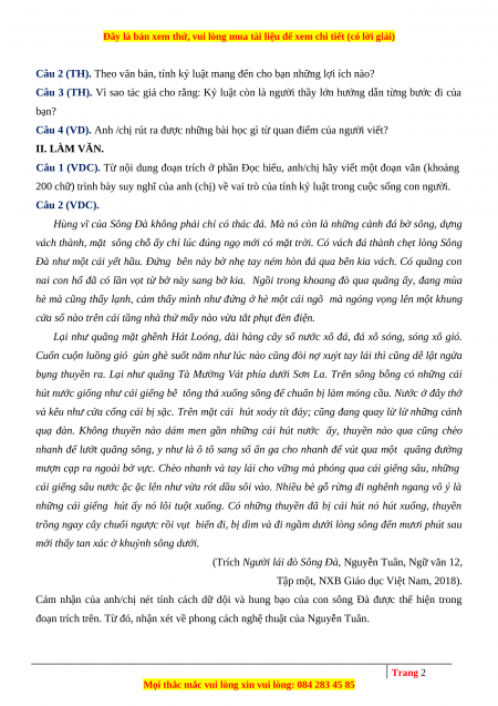 200 chữ) trình bày suy nghĩ của anh (chị) về vai trò của tính kỷ luật trong cuộc sống con người. Câu 2 (VDC).