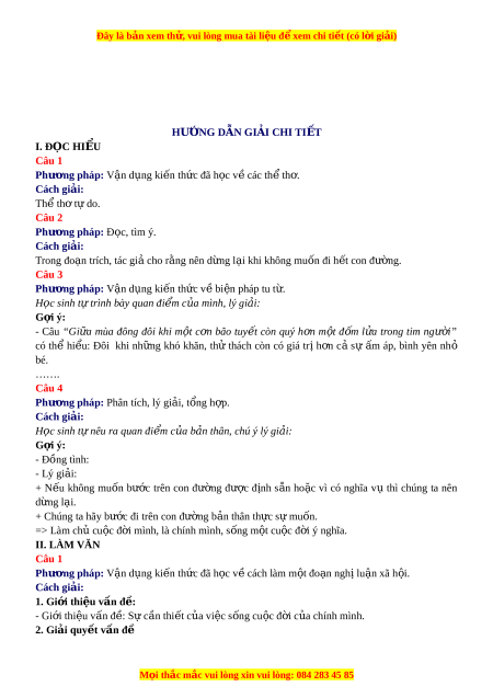 Đây là bản xem th , vu ử i lòng mua tài li u ệ đ xe ể m chi ti t ế (có l i ờ gi i ả ) HƯ NG Ớ D N Ẫ GI I Ả CHI TI T Ế I. Đ C Ọ HI U Ể Câu 1