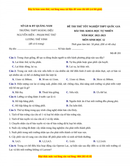 NGUYỄN HIỀN – PHẠM PHÚ THỨ NĂM HỌC 2022-2023 LƯƠNG THẾ VINH MÔN SINH HỌC 12 (đề có 6 trang)