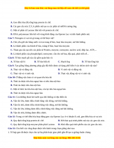 Câu 12: Trong cơ chế điều hòa hoạt động gen của Operon Lac ở vi khuẩn E.coli, gen điều hòa có vai trò: