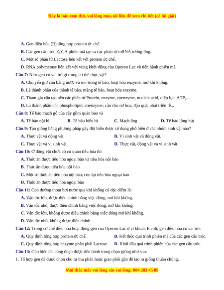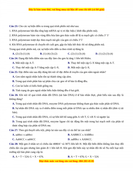 Đây là bản xem thử, vui lòng mua tài liệu để xem chi tiết (có lời giải)