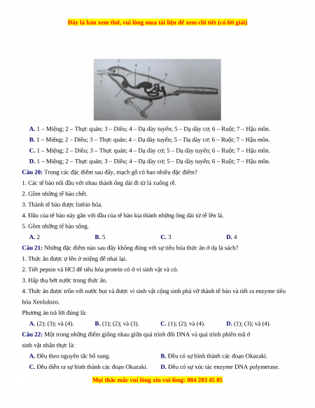 Câu 20: Trong các đặc điểm sau đây, mạch gỗ có bao nhiêu đặc điểm?