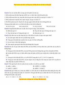 Câu 23: Cho các sự kiện diễn ra trong quá trình phiên mã như sau: