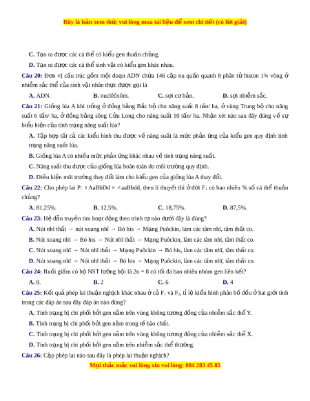 Đây là bản xem th , vu ử i lòng mua tài li u ệ đ xe ể m chi ti t ế (có l i ờ gi i ả ) C. Tạo ra đư c ợ các cá thể có ki u ge ể n thuần ch ng. ủ D. Tạo ra đư c