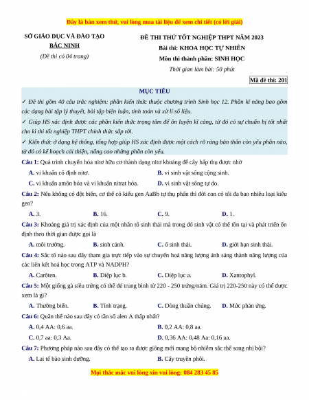 Bài thi: KHOA HỌC TỰ NHIÊN