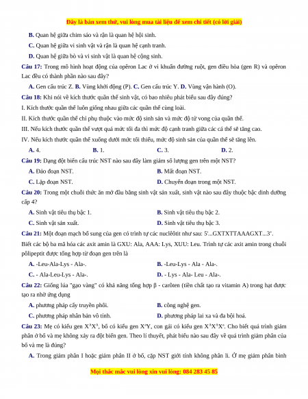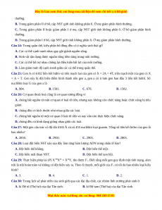 Câu 19: Dạng đột biến cấu trúc NST nào sau đây làm giảm số lượng gen trên một NST? A. Đảo đoạn NST. B. Mất đoạn NST. C. Lặp đoạn NST.