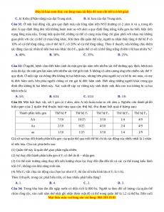 Câu 6: Quần thể nào sau đây có tần số alen A thấp nhất? A. 0,4 AA: 0,6 aa. B. 0,2 AA: 0,8 aa. C. 0,7 aa: 0,3 Aa.
