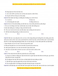 Câu 7: Một axit amin có thể do nhiều bộ ba cùng quy định, điều này chứng tỏ mã di truyền có tính