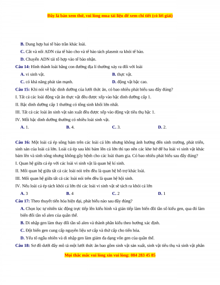 TÀI LIỆU BỘ BÁN CHẠY MÔN Sinh Học