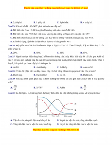 Câu 8: Một NST có trình tự các gen là ABCDE*GHIK bị đột biến, NST sau đột biến có trình tự gen