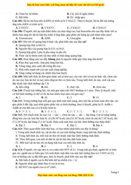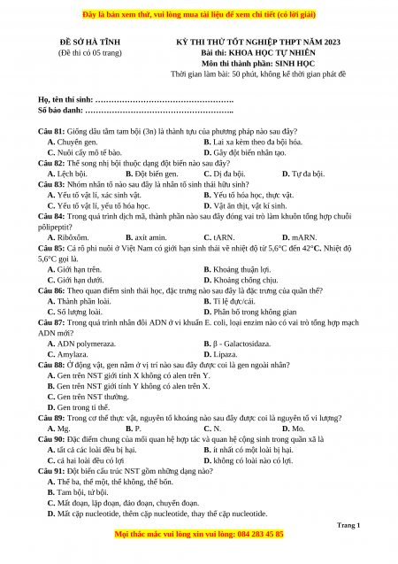 Bài thi: KHOA HỌC TỰ NHIÊN