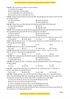 Câu 82: Thể song nhị bội thuộc dạng đột biến nào sau đây? A. Lệch bội. B. Đột biến gen. C. Dị đa bội. D. Tự đa bội.