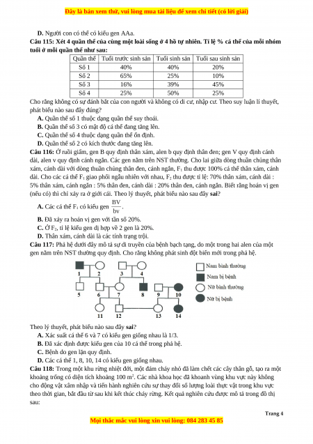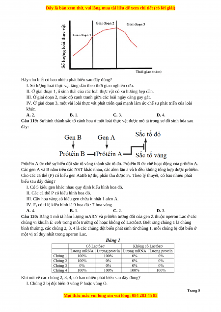 Câu 110: Ở một loài lưỡng bội, xét một gen nằm trên NST thường có 5 alen. Theo lý thuyết, một