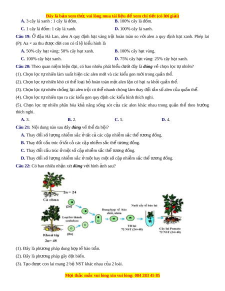 ủ các alen khác nhau trong qu n ầ thể theo hư ng ớ thích nghi. A. 3. B. 2. C. 5. D. 4. Câu 21: N i