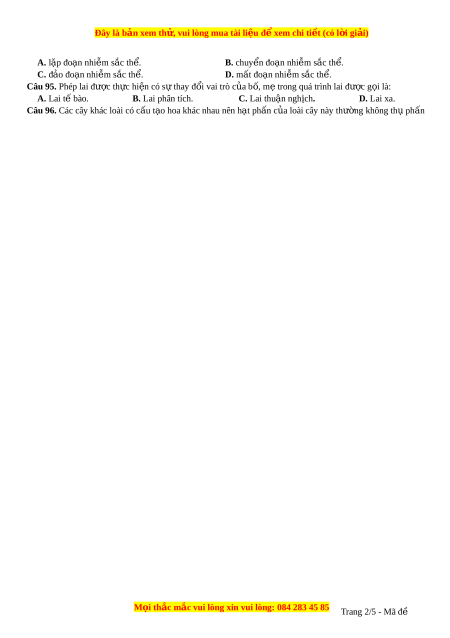 Câu 95. Phép lai đư c ợ th c ự hi n c ệ ó s t ự hay đ i ổ vai trò c a ủ b , ố m t