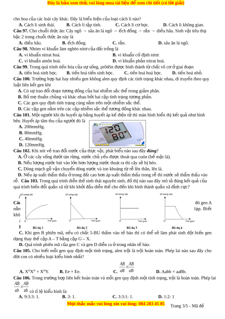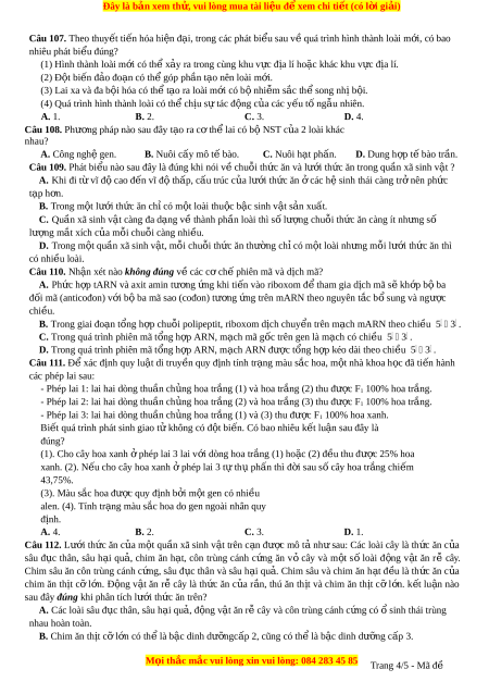 Đây là bản xem th , vu ử i lòng mua tài li u ệ đ xe ể m chi ti t ế (có l i ờ gi i ả ) Câu 107. Theo thuy t ế ti n hóa ế hi n đ ệ ại, trong các phát bi u s ể au v quá ề trình hình thành loài m i ớ , có bao nhiêu phát biểu đúng?
