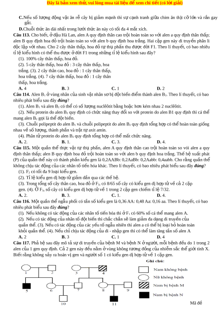 B. tiến hoá tiền sinh h c ọ . C. tiến hoá hoá h c ọ . D. tiến hoá nh . ỏ Câu 100. Trư ng ờ h p ha ợ i hay nhi u ge ề n không alen quy đ nh ị các tính tr ng khá ạ c nhau, di truy n t ề heo quy luật liên k t ế gen khi A. Có s t