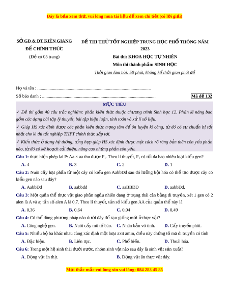 SỞ GD & ĐT KIÊN GIANG Đ Ề THI TH Ử T T Ố NGHI P Ệ TRUNG H C Ọ PH Ổ THÔNG NĂM Đ C Ề HÍNH TH C Ứ 2023 (Đề có 05 trang) Bài thi: KHOA H C Ọ T N Ự HIÊN Môn thi thành ph n ầ : SINH H C Ọ Th i