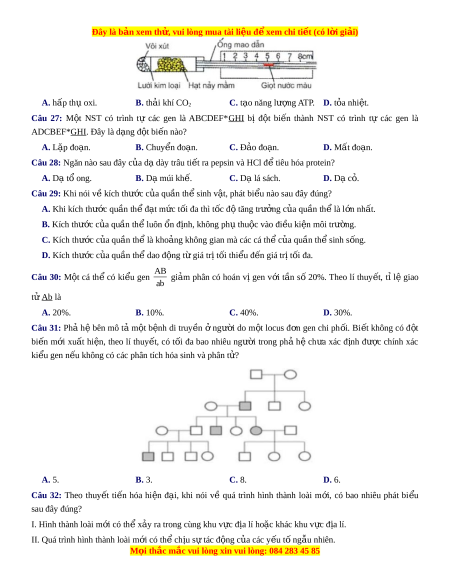 Đây là bản xem th , vu ử i lòng mua tài li u ệ đ xe ể m chi ti t ế (có l i ờ gi i ả ) A. hấp th oxi ụ . B. thải khí CO2 C. tạo năng lư ng ợ ATP. D. t a ỏ nhi t ệ . Câu 27: M t