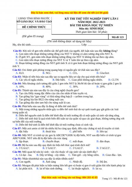 Trang 1/5 - Mã đề thi 123