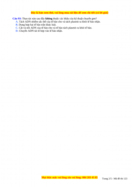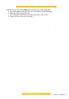 Câu 93: Thao tác nào sau đây không thuộc các khâu của kỹ thuật chuyển gen?