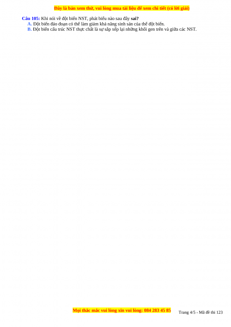 Câu 105: Khi nói về đột biến NST, phát biểu nào sau đây sai?