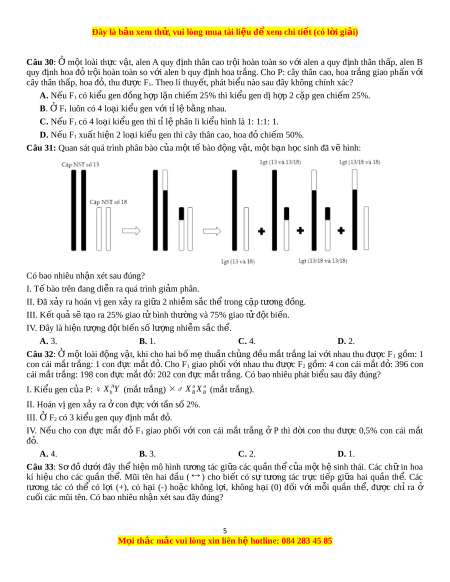 ợ , có hại hoặc trung tính đ i ố v i ớ thể đ t ộ bi n. ế Câu 7: Bi t ế r ng ằ m i ỗ c p ặ gen quy đ nh ị m t ộ c p ặ tính tr ng ạ và alen tr i ộ là tr i
