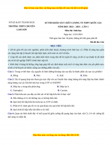 NĂM HỌC 2022 – 2023 – LẦN 1 LAM SƠN Môn thi: Sinh học Ngày thi: 11/01/2023