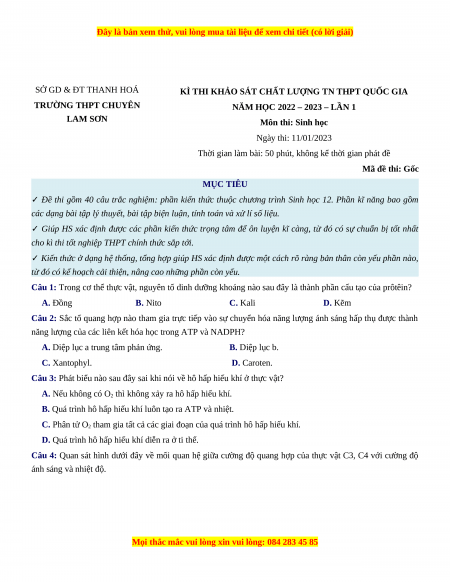 - Đề thi THPT Quốc Gia Sinh học trường THPT Chuyên Lam Sơn - Thanh Hóa lần 1 năm 2023 bản word có lời giải chi tiết