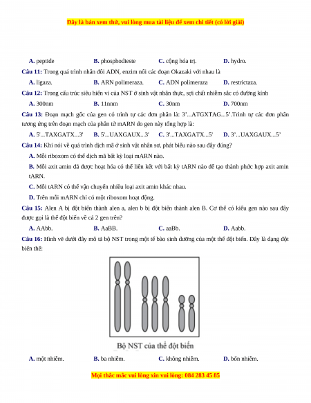 Đây là bản xem thử, vui lòng mua tài liệu để xem chi tiết (có lời giải)