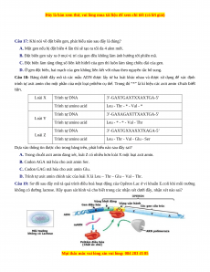 Câu 13: Đoạn mạch gốc của gen có trình tự các đơn phân là: 3’...ATGXTAG...5’.Trình tự các đơn phân