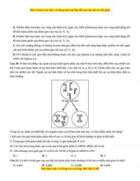 Câu 21: Cơ thể có kiểu gen nào sau đây khi giảm phân bình thường có thể tạo ra nhiều loại giao tử nhất?
