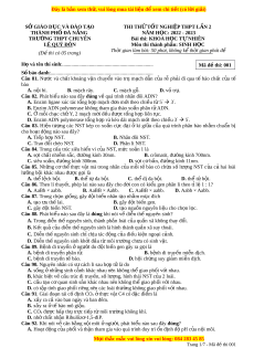 Đây là bản xem th , vu ử i lòng mua tài li u ệ đ xe ể m chi ti t ế (có l i ờ gi i ả ) SỞ GIÁO D C Ụ VÀ ĐÀO T O Ạ THI THỬ TỐT NGHI P Ệ THPT L N Ầ 2 THÀNH PH Đ Ố À N N Ẵ G NĂM HỌC: 2022 - 2023 TRƯ N Ờ G THPT CHUYÊN Bài thi: KHOA H C Ọ T N Ự HIÊN LÊ QUÝ ĐÔN Môn thi thành ph n ầ : SINH H C Ọ
