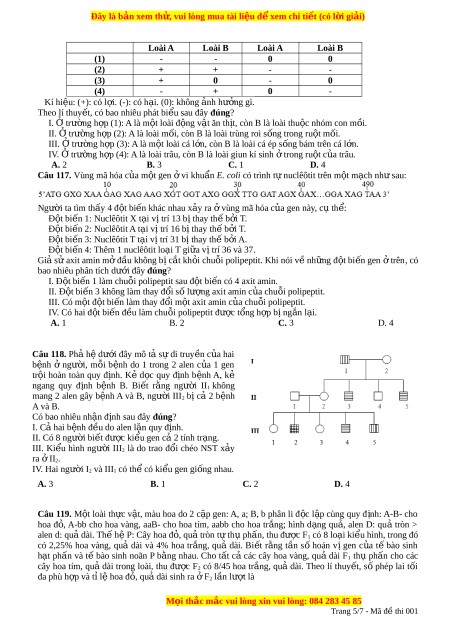 ọ thắc mắc vui lòng xin vui lòng: 084 283 45 85 Trang 1/7 - Mã đ ề thi 001