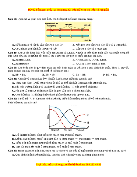 D. Có thể làm xuất hi n a ệ len m i ớ , làm phong phú v n ge ố n c a ủ qu n t ầ h . ể Câu 24: M t ộ bạn h c
