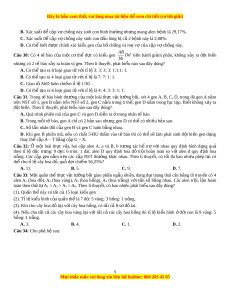 D. Alen a và alen A có số lư ng nuc ợ lêôtit b ng nha ằ u. Câu 15: Ở th c ự vật, alen B quy đ nh ị là nguyên tr i ộ hoàn toàn so v i ớ alen b quy đ nh ị là x ẻ thùy. Trong qu n ầ thể đang cân b ng ằ di truy n, ề cây lá nguyên chi m